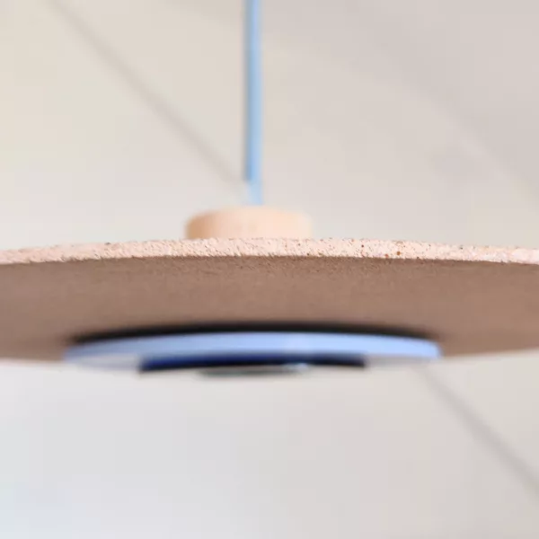 Combining light wood, brushed terracotta Jesmonite, and blue plexiglass,