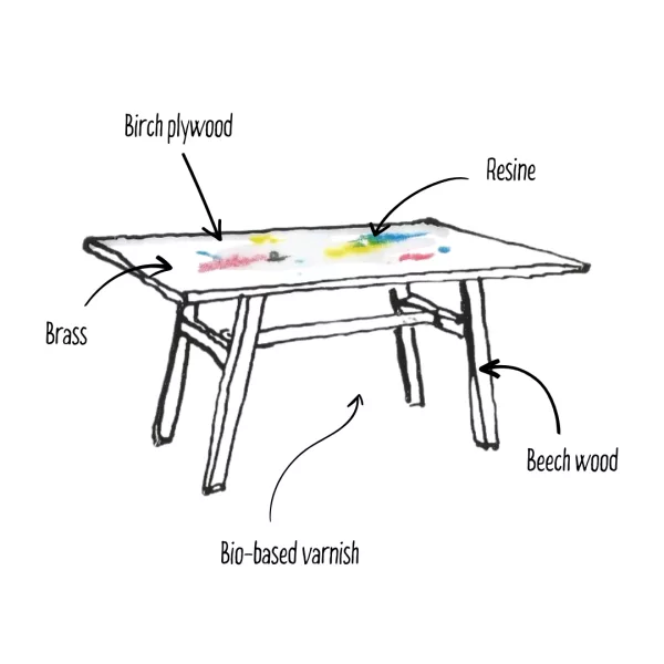 Flat-cast resin inside with brass inlay.