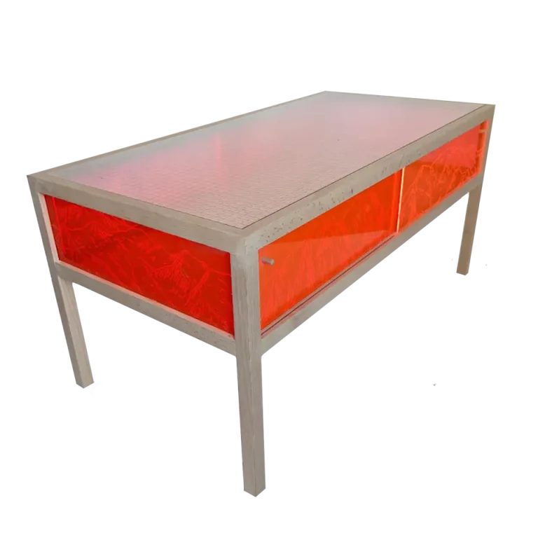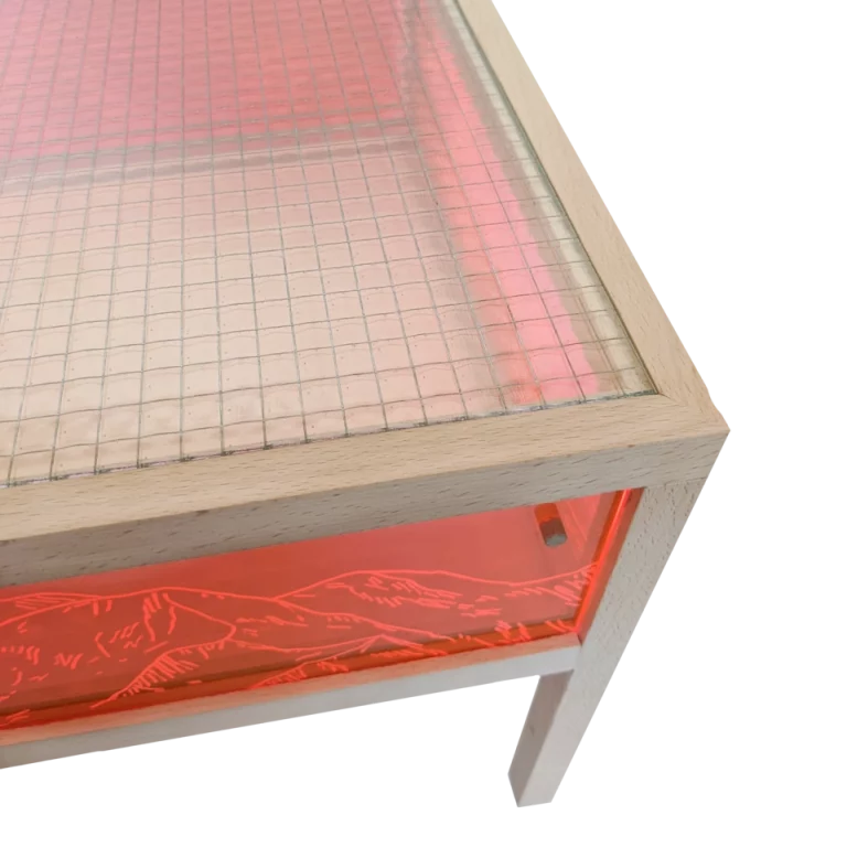 beech – fluorescent plexiglass – birch plywood – wired glass