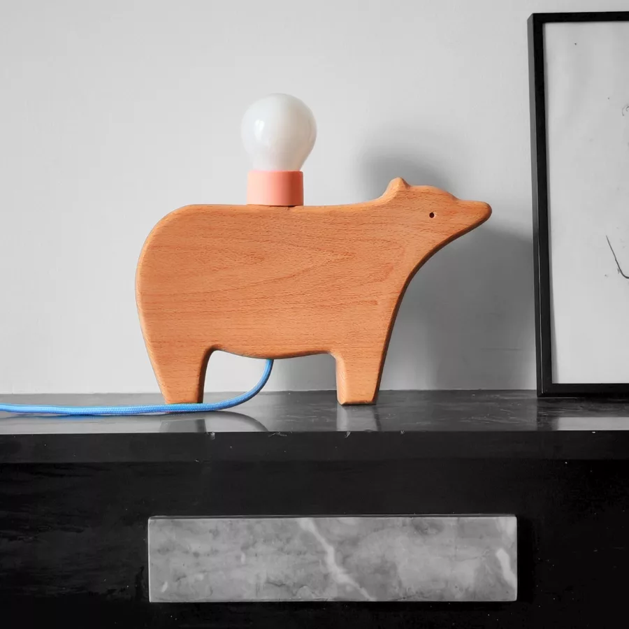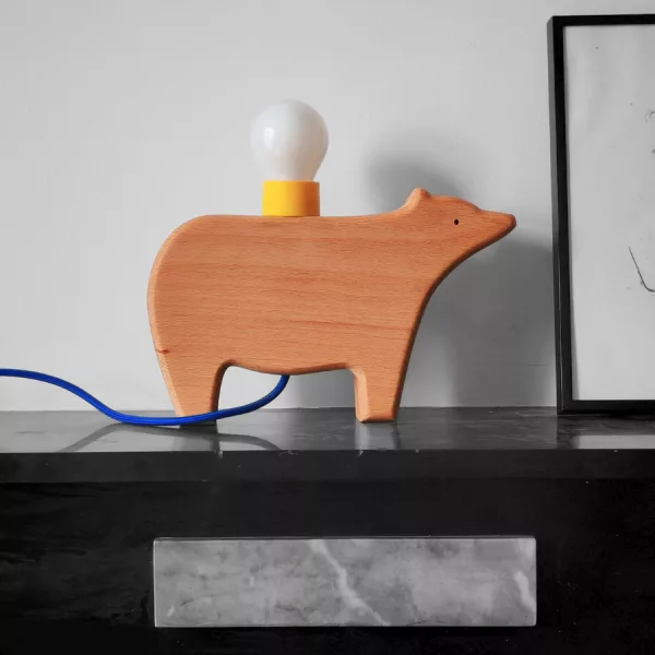 Une lampe aux formes douces et au design épuré. Du bois brut et de la couleur.