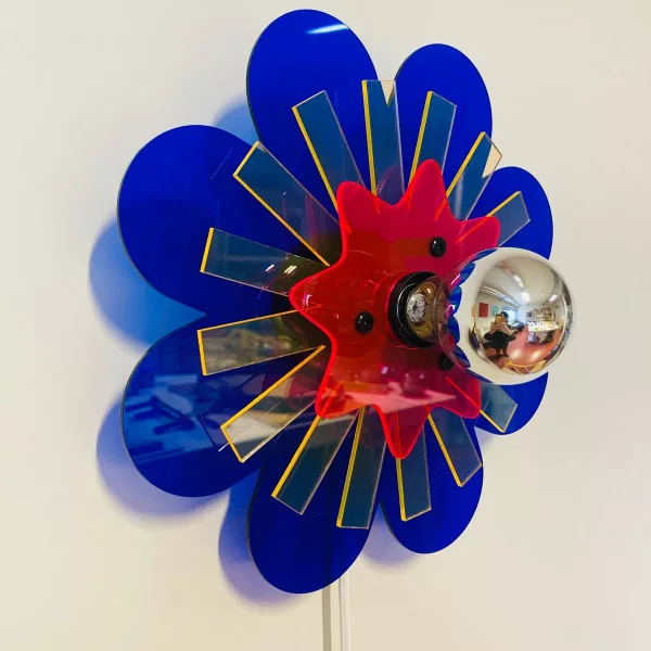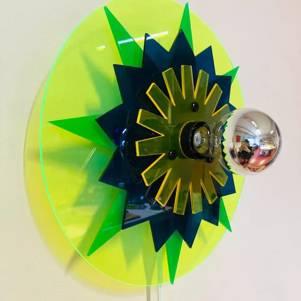 Allumée, la lampe projette un jeu d’ombres kaléidoscopiques, presque comme une composition graphique accrochée au mur.