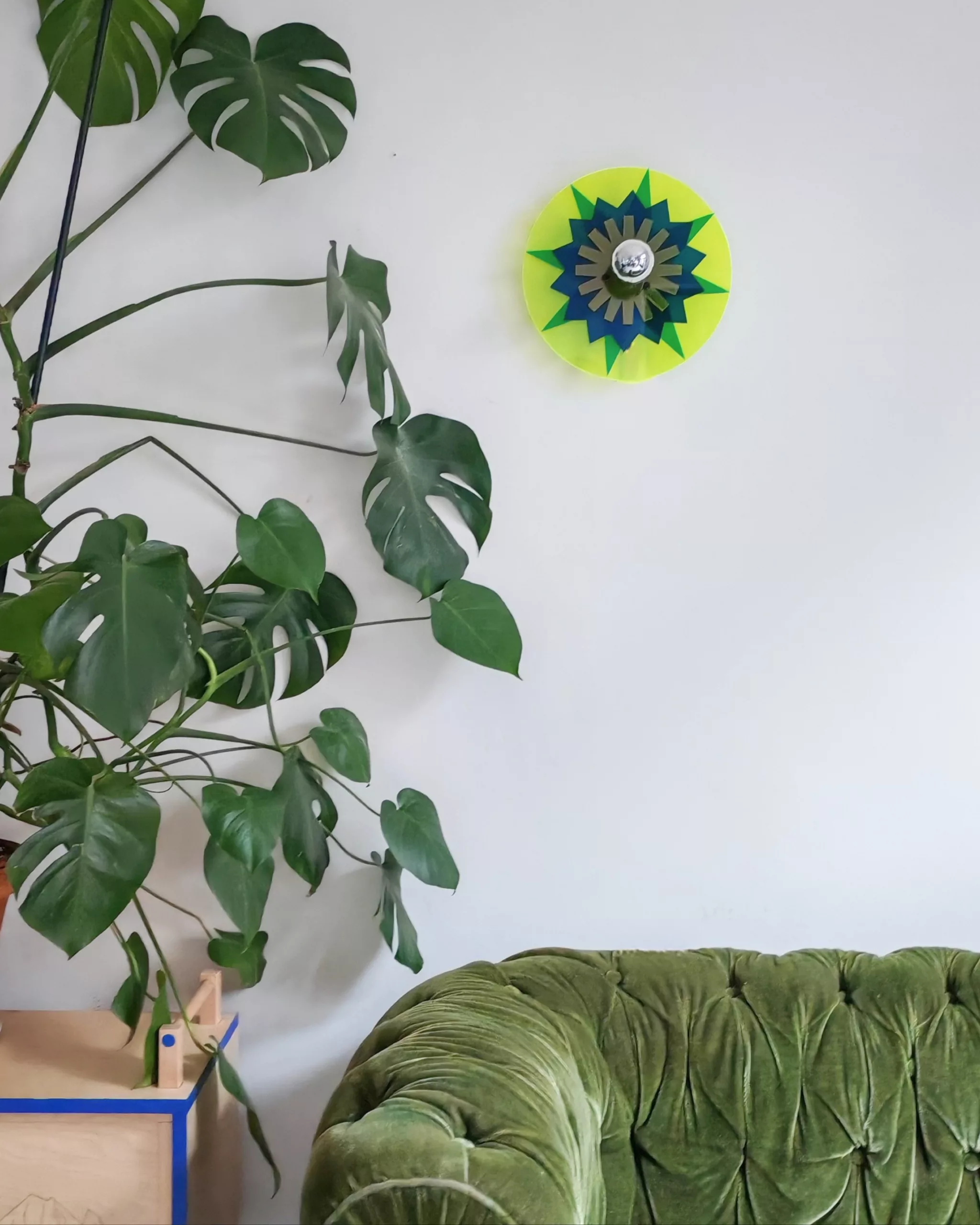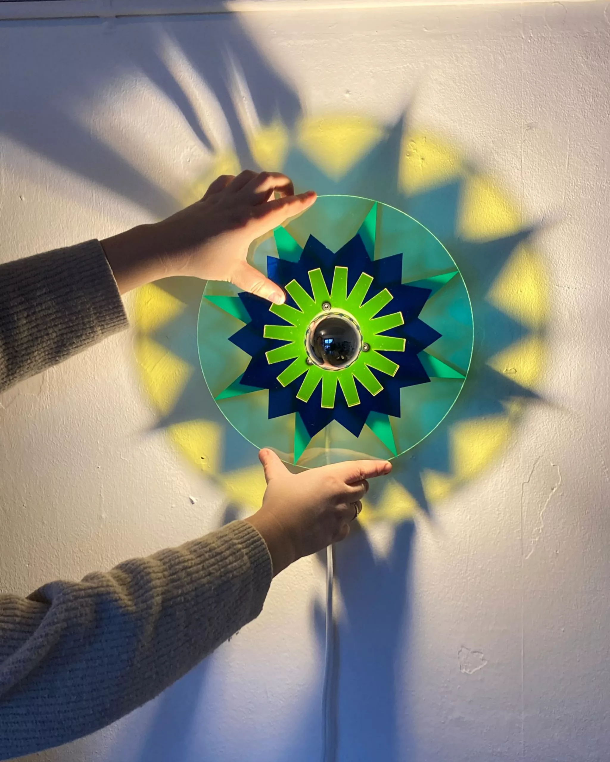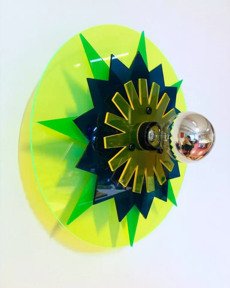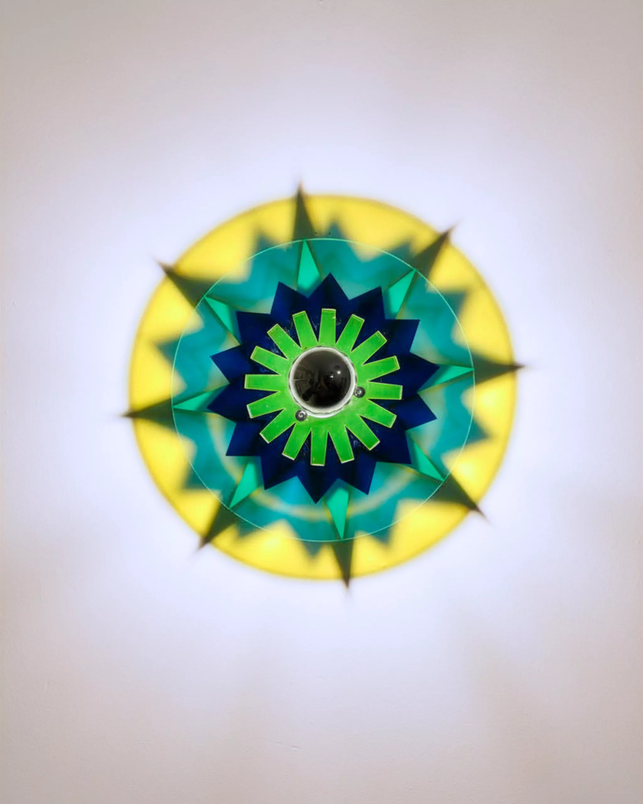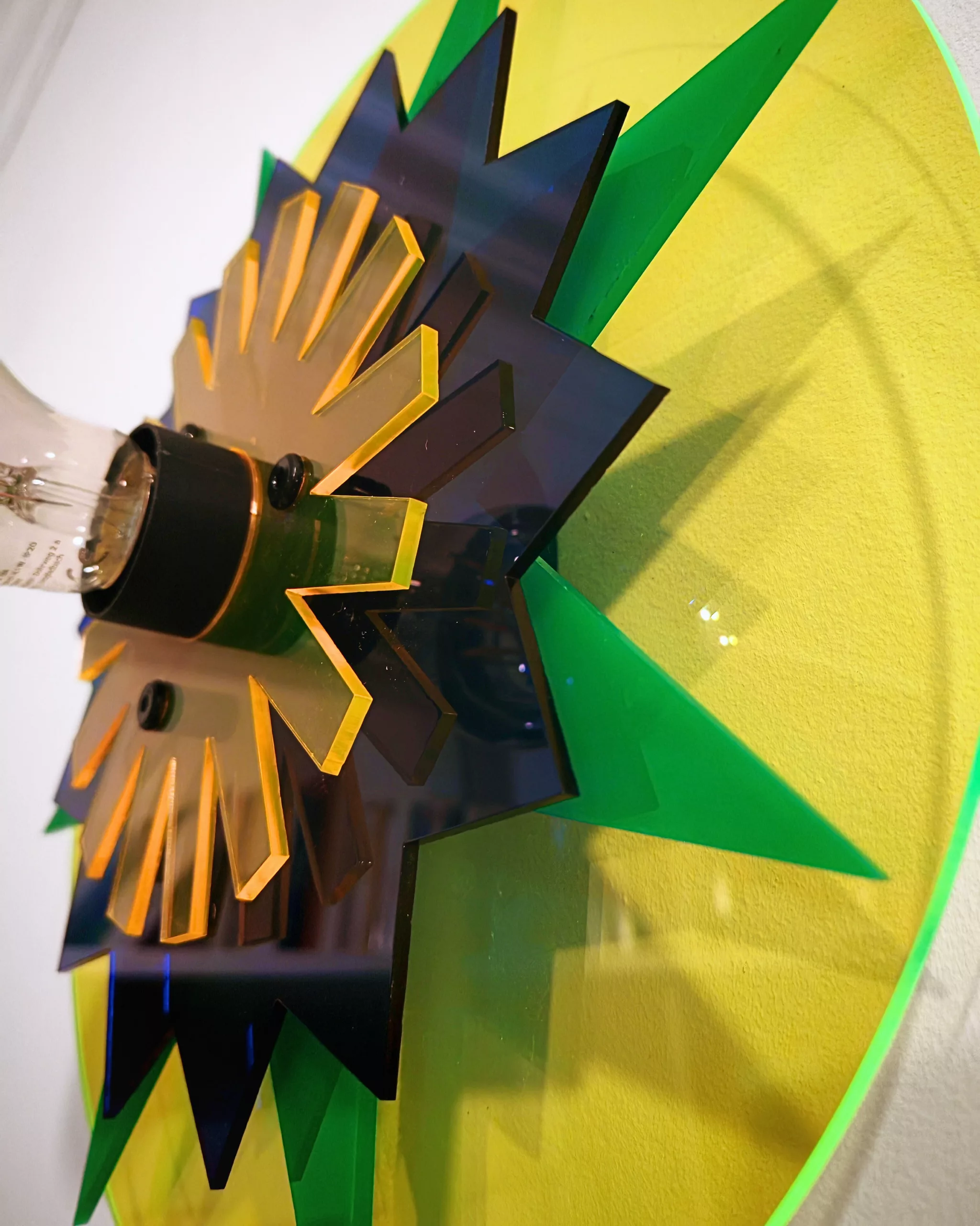 PO.YA explore le plexiglass comme médium de couleur et de lumière — les formes se construisent par superposition de plans translucides, créant reflets et variations chromatiques selon l’intensité et le point de vue.
