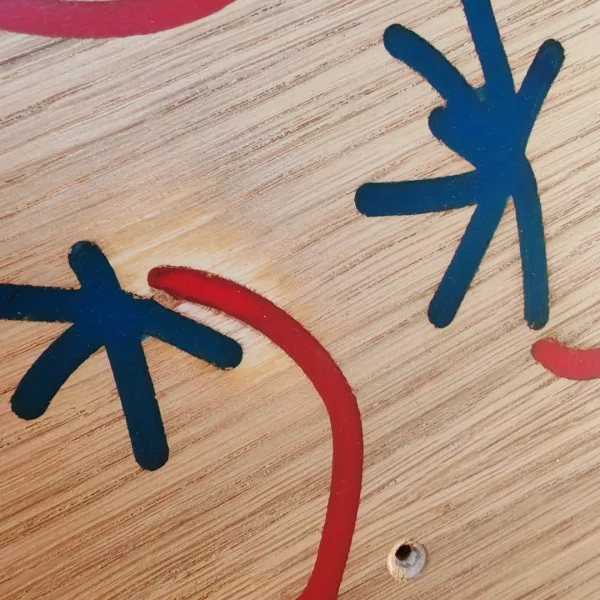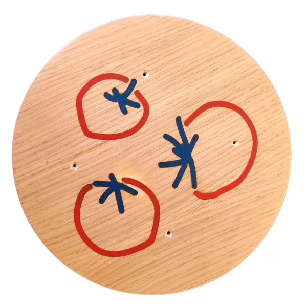 Tomates du coin - A Tabouret pour enfants de la serie Mini Défaut et trop de ponçage sur le haut d’une des tomates Prix 50 € Contacter par mail ici